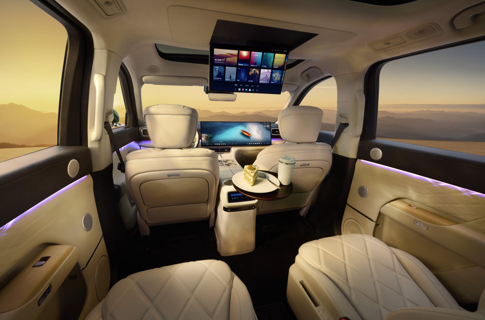 在设计方面,深度融入东方美学的风云T11外观豪华大气,座舱配有17㎡皮质工艺包覆面积,配合全系标配的全车静音玻璃与静音轮胎等配置,构建了深空静谧座舱。同时,风云T11还搭载前排30吋6K一体寰宇屏与17.3吋后舱娱乐屏,结合峰值功率达2880W的7.5.4.2全景声布局的伯牙之音豪华音响与256色律动氛围灯,让每一次出行都是一场影音盛宴。