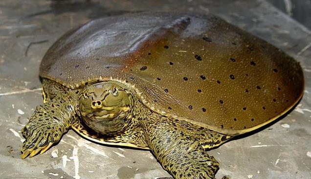 我们应该加强对鼋的保护,努力恢复它们的生存环境,让这一神秘而古老的物种得以延续。斑鳖,曾经广泛分布于我国长江下游和珠江水系地区,但如今全球已知仅存的几只也面临着严峻的生存挑战。斑鳖的体型仅次于鼋,背甲呈圆盘型,皮肤光泽呈暗墨绿色,随着年龄的增长,皮肤上的斑点也会增多,这使它们在鳖类中具有独特的外貌特征。