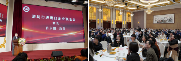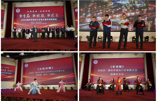 宣讲会结束后,会员企业参会人员举行了迎新年晚宴和潍坊市进出口企业联合会成立十周年庆祝活动,高新区分会、青州分会、潍城区分会、昌乐分会和安丘分会的会员单位分别推出了精彩的文艺节目。