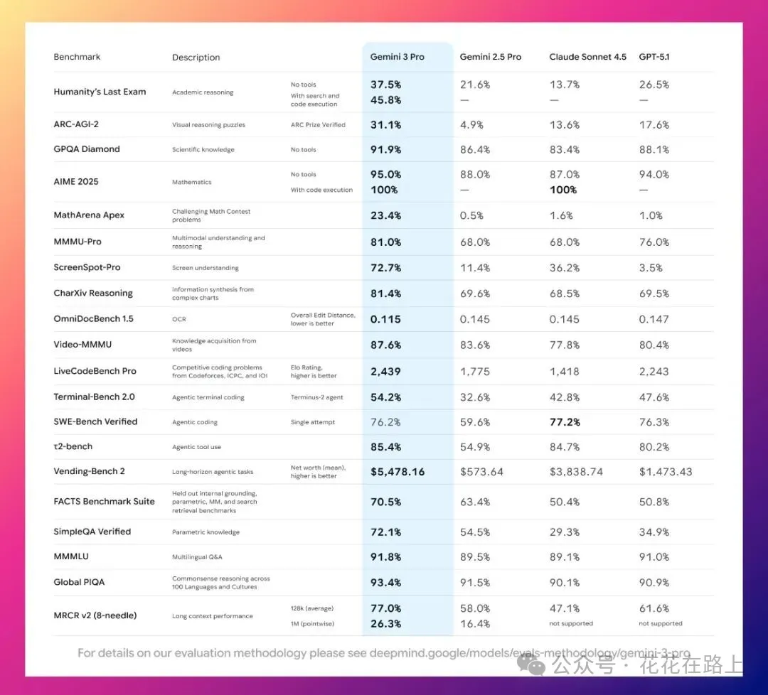 尤其是那个博士级难度的 HLE 测试,它能做到 37.5%,还是不带任何外部工具的纯推理。你再看 GPT-5.1 的 26.5%,Claude 的 13.7%,就知道什么叫差距肉眼可见。