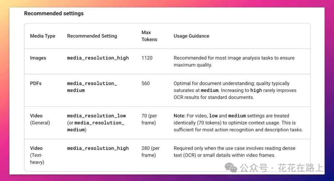 谷歌还塞了一个很实用的功能:media_resolution。可以自己调阅读图片和视频的精细度,普通合同几百 tokens 就能解析完,要看细节再把精度拉高,灵活又省钱。