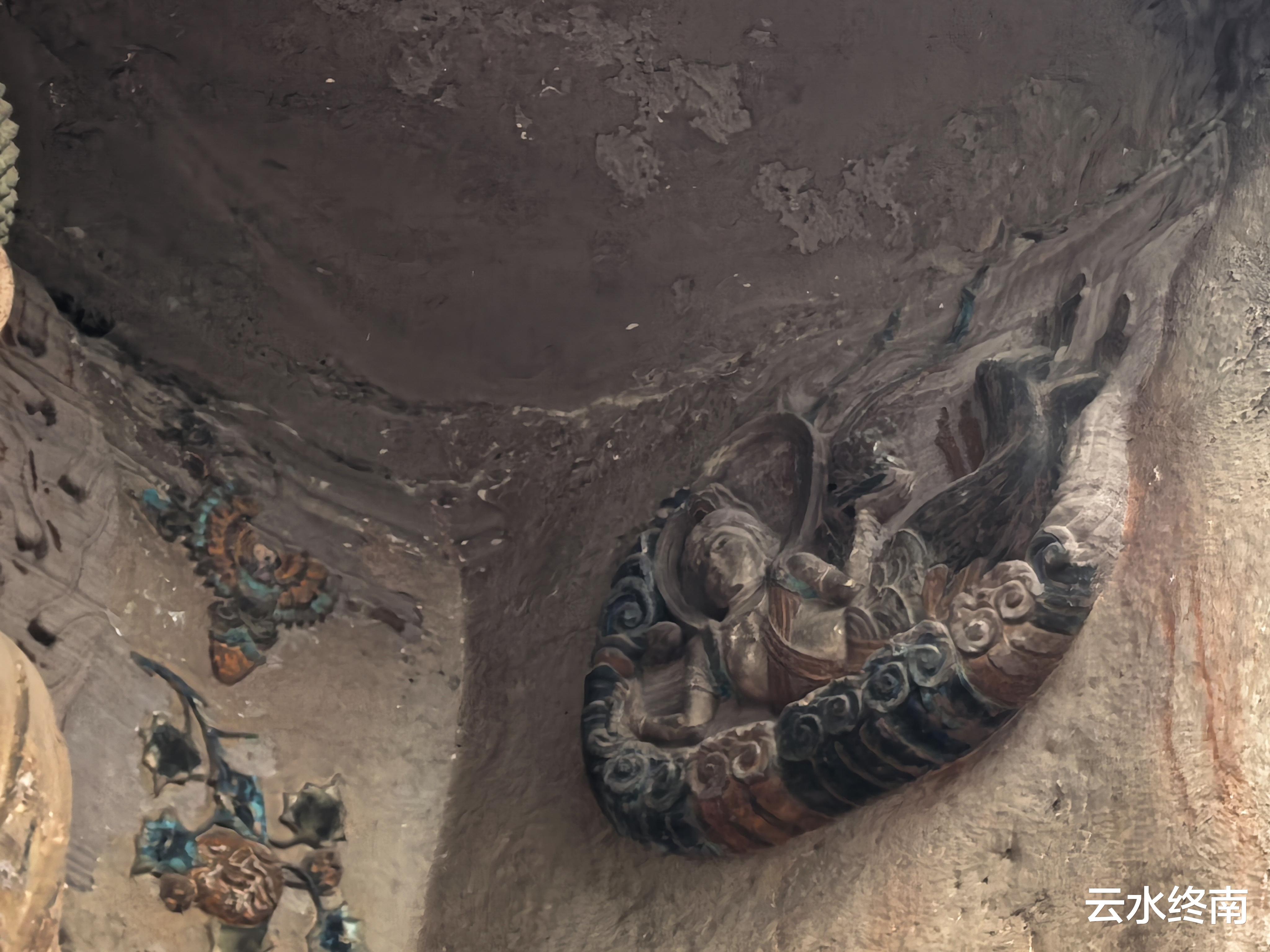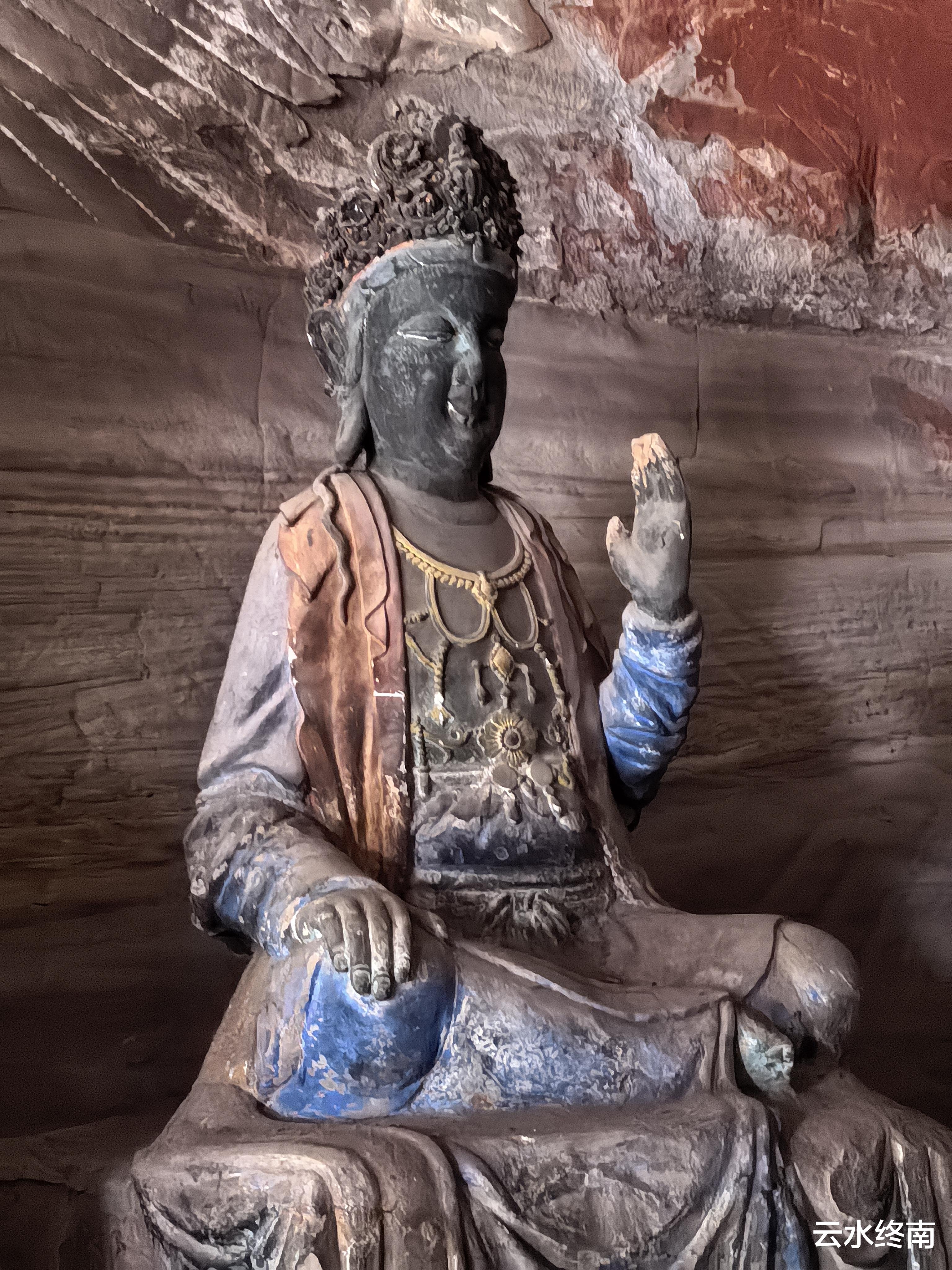 开始我还疑惑,这洞里的菩萨怎么面容很多都不自然,后来查了资料才知道,菩萨的头是上个世纪八十年代补塑,原先的头早就被破坏。