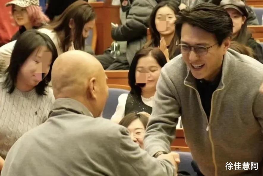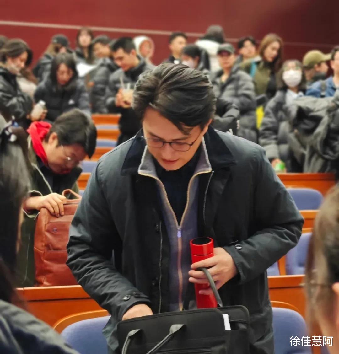 靳东的出现,为这场讲座增添了一抹亮色。他身着深色外套,戴着眼镜,显得儒雅而内敛。与舞台上的光鲜亮丽不同,此刻的他更像是一位谦逊的学生,认真聆听着陈佩斯的讲解,眼神中充满了对艺术的敬佩和渴望。