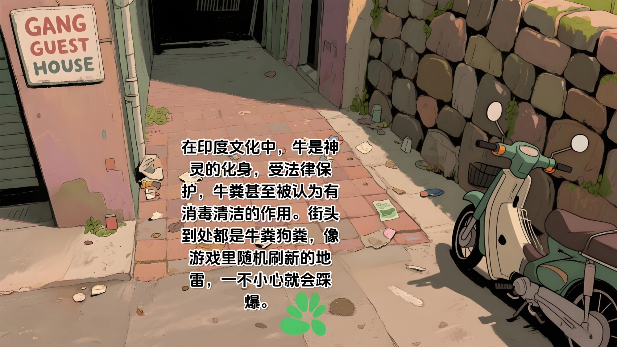 在印度文化中,牛是神灵的化身,受法律保护,牛粪甚至被认为有消毒清洁的作用。街头到处都是牛粪狗粪,像游戏里随机刷新的地雷,一不小心就会踩爆。