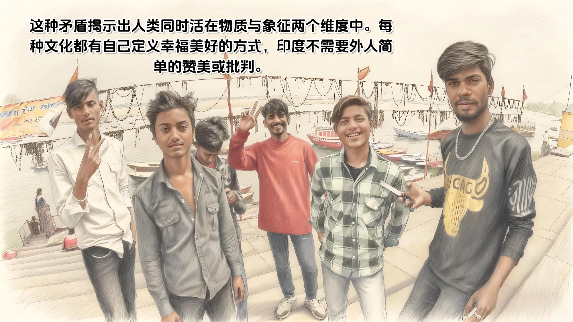 这种矛盾揭示出人类同时活在物质与象征两个维度中。每种文化都有自己定义幸福美好的方式,印度不需要外人简单的赞美或批判。