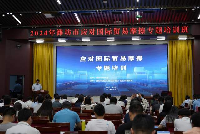 2024年5月31日,潍坊市商务局联合潍坊市进出口企业联合会,在安丘市委党校成功举办了“应对国际贸易摩擦专题培训活动”。此次培训旨在充分发挥山东省国际贸易摩擦法律服务团和省应对国际贸易摩擦工作站的作用,进一步提升企业对国际贸易形势的认识和应对能力。共有来自各县市区、市属各开发区的商务部门分管负责人、业务科室负责人,以及部分外贸企业、跨境电商企业负责人等162家企业、187人参加了培训。