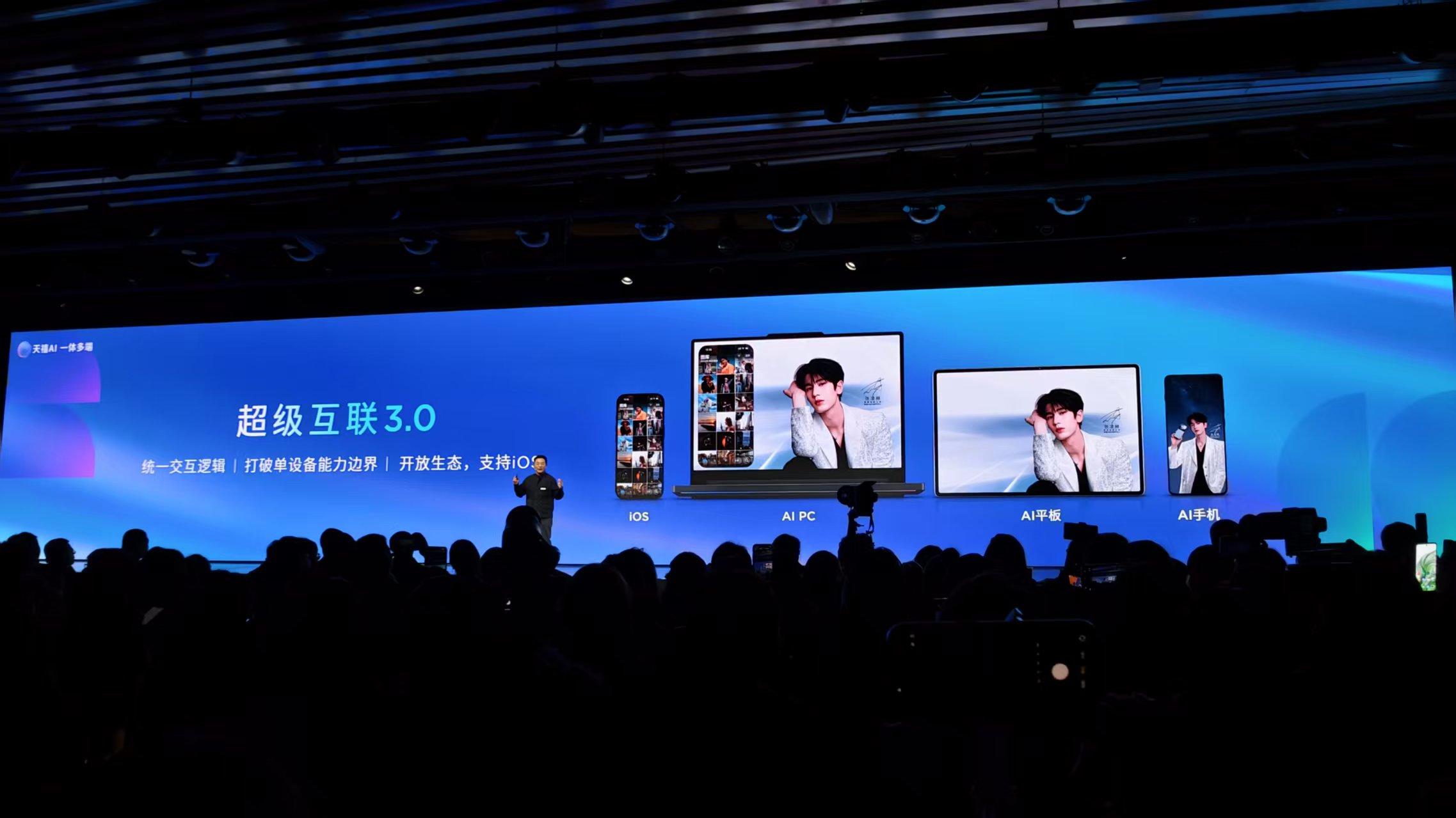 今晚,内地知名男艺人张凌赫来到了发布会现场,在演示环节他体验了诸多今天发布的AI智能体功能,还分享了他使用联想新品的一些感受。