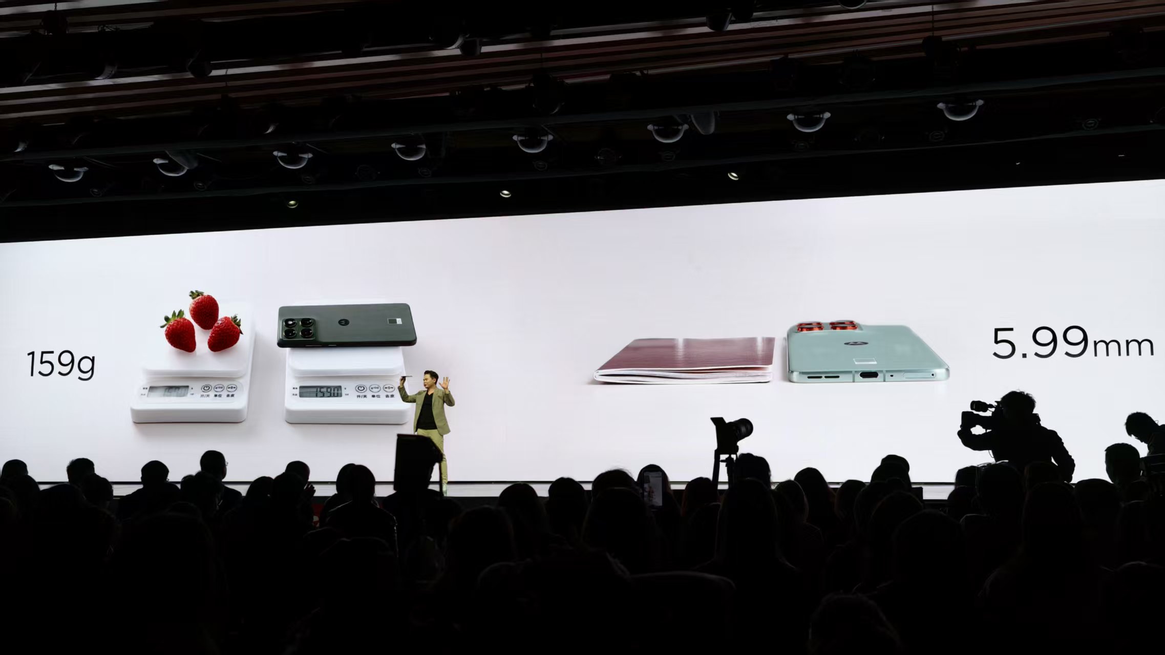 联想moto X70 Air机身厚度仅有5.99毫米,重量159克,大约相当于3颗草莓。