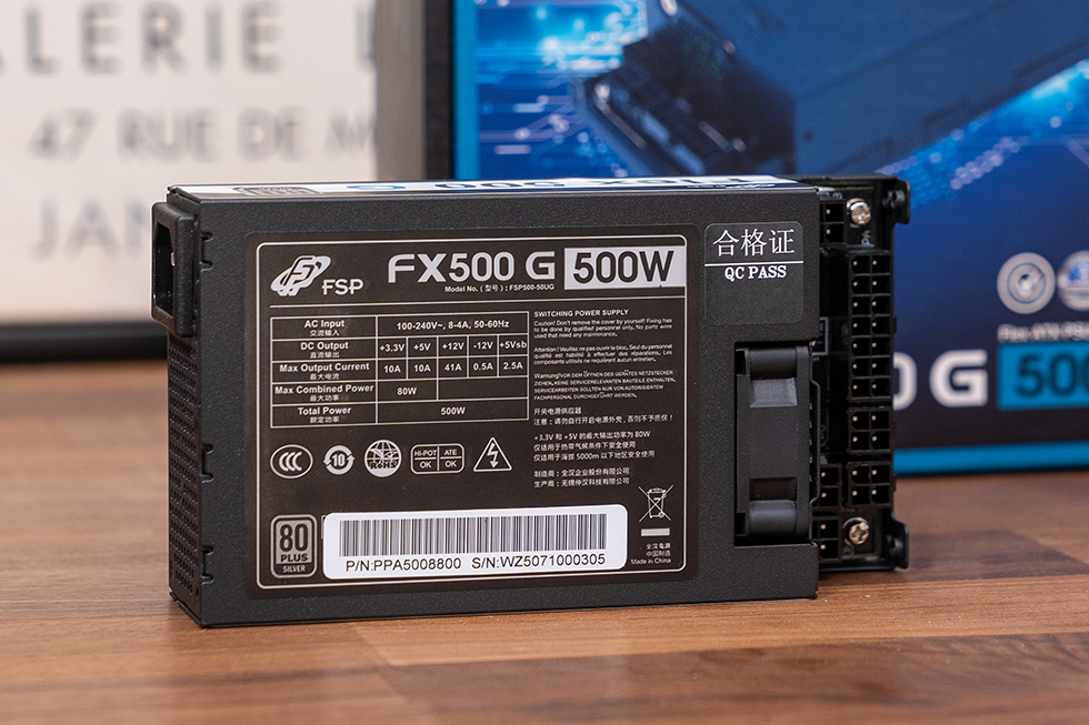 电源来自全汉的FX500 G,1U FLEX规格,采用全日系电解电容及东芝MOS管,通过 80PLUS 银牌认证,转换效率可达 90%,全模组设计,自带模组线,并提供五年质保,十分适配ITX机箱以及MINI PC 主机。