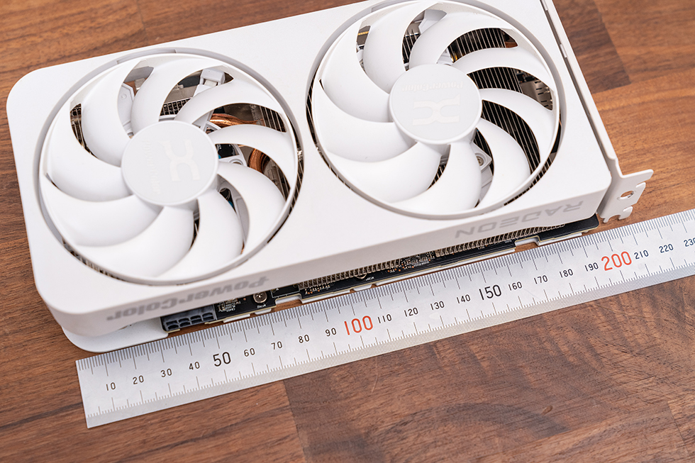 显卡本体尺寸为220mm*120mm*40mm(含挡板),2 槽厚度设计,可谓是2000-3000价位里面尺寸最小的卡,可轻松装ITX 小尺寸机箱,解决三风扇型号装机兼容性难题。