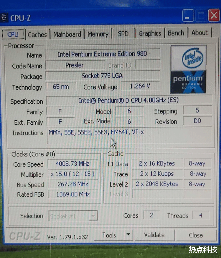 目前在社交媒体上,一位网友分享了他拿到的一块名字为英特尔奔腾至尊版980处理器的产品,这颗处理器似乎在任何地方都没有踪迹和技术文档,上面只是显示处理器的频率能够达到4GHz,拥有2核4线程的规格,也就是英特尔初代双核处理器,基于65nm制程工艺打造。