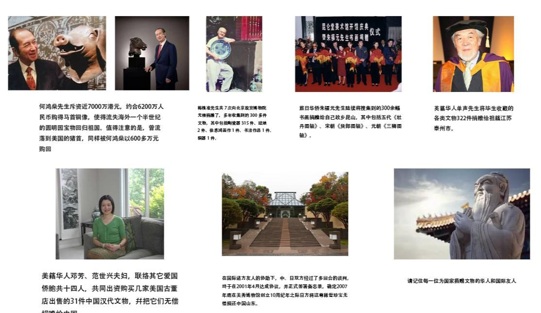 随着我国综合国力的增强,在国家的不断努力下,遗落在世界各地的国宝在国家相关部门以及爱国人士的努力下逐渐回到祖国的怀抱,很多国家为了和我国改善关系,将近代掠夺我国的众多国宝级文物主动进行归还,衷心希望有更多的国家和个人加入到这个行列中来。