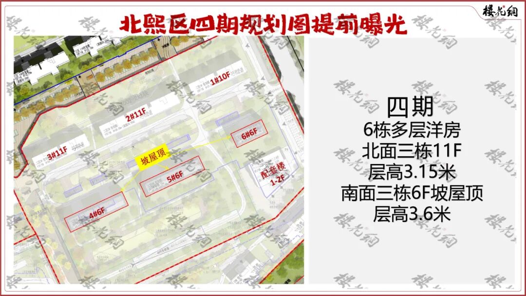 从图纸上看,北熙区四期规划了6栋住宅楼和1栋配套楼。
