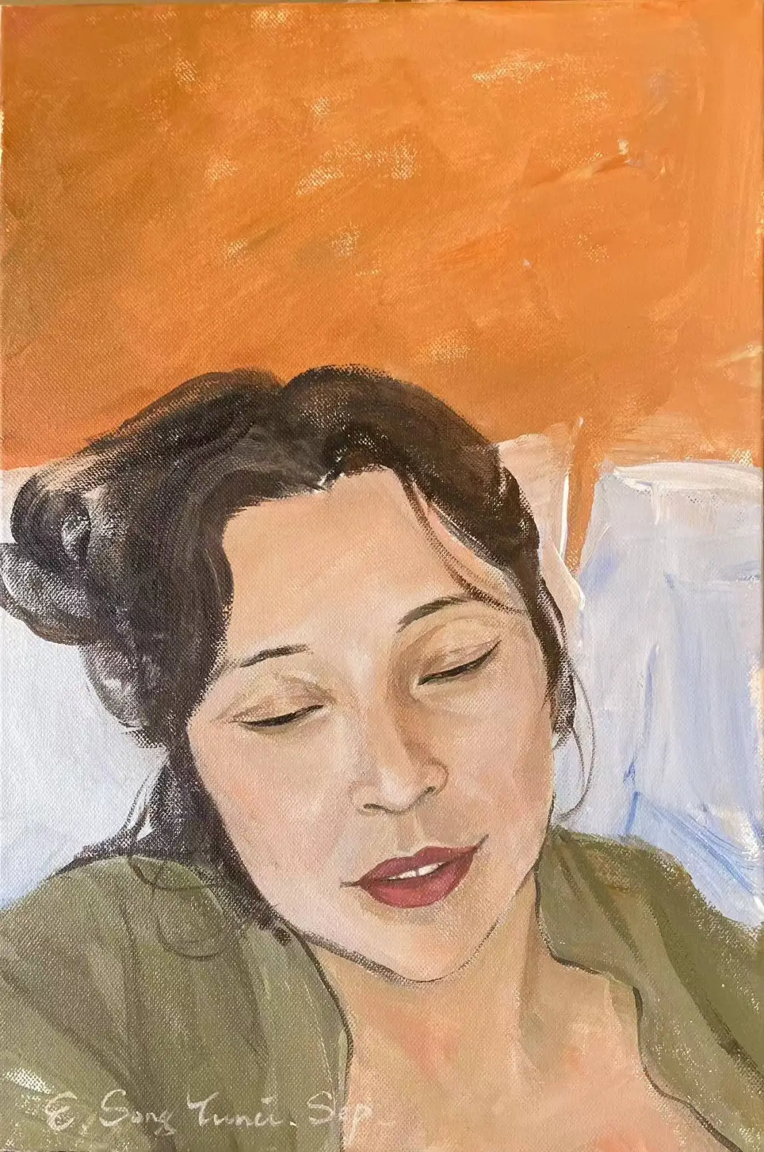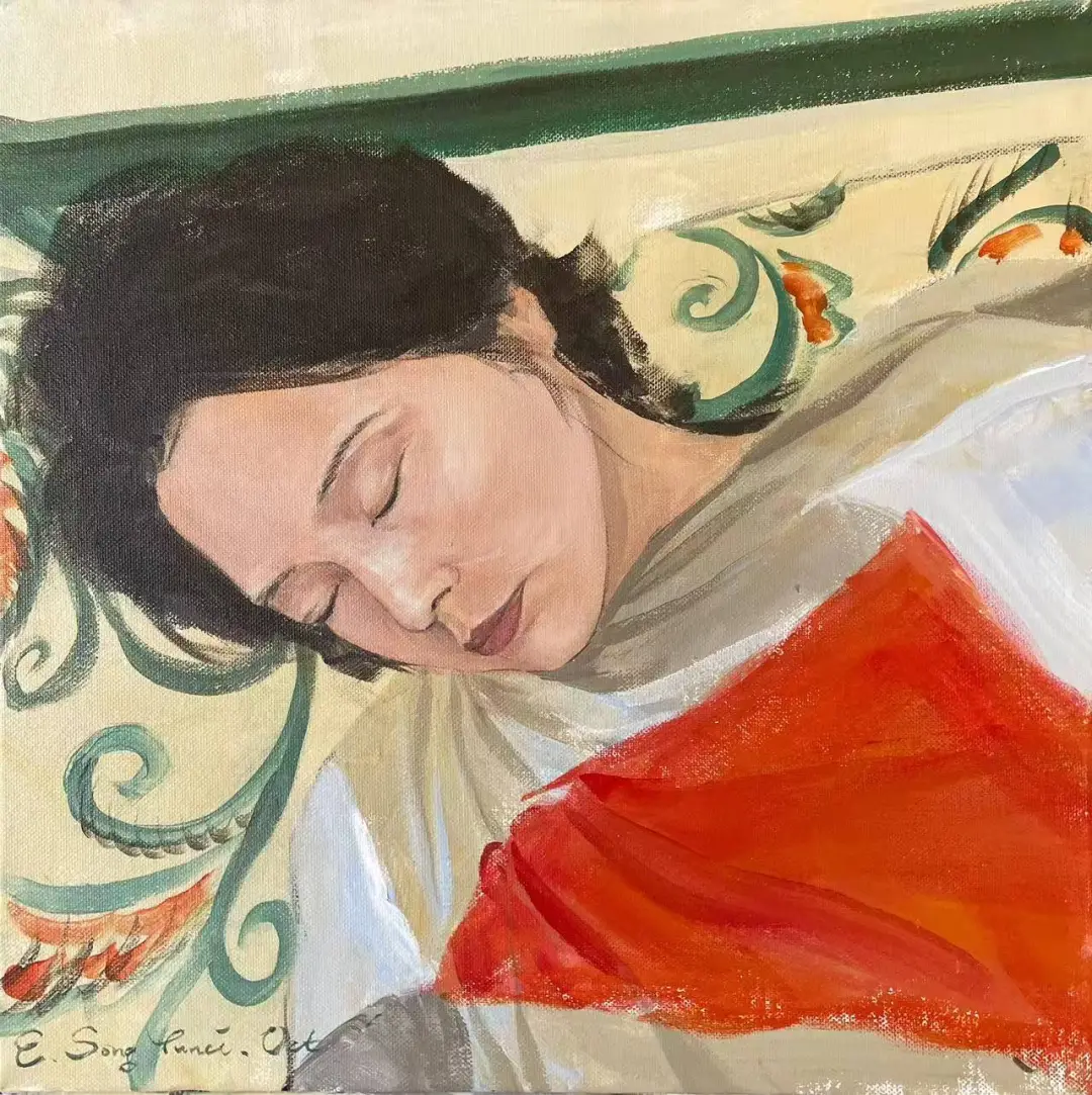 盖毯子的女人 2024 布面丙烯 40×40cm