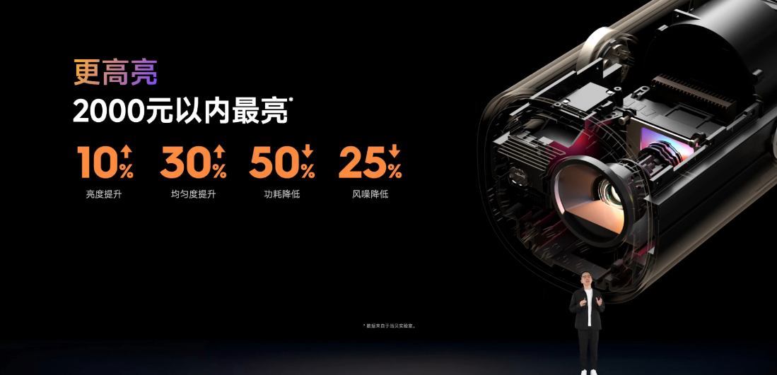 2025年发布自研日蚀光学引擎,重构光学底层架构,提升光学效率,颠覆性地将对比度推向全新高度。