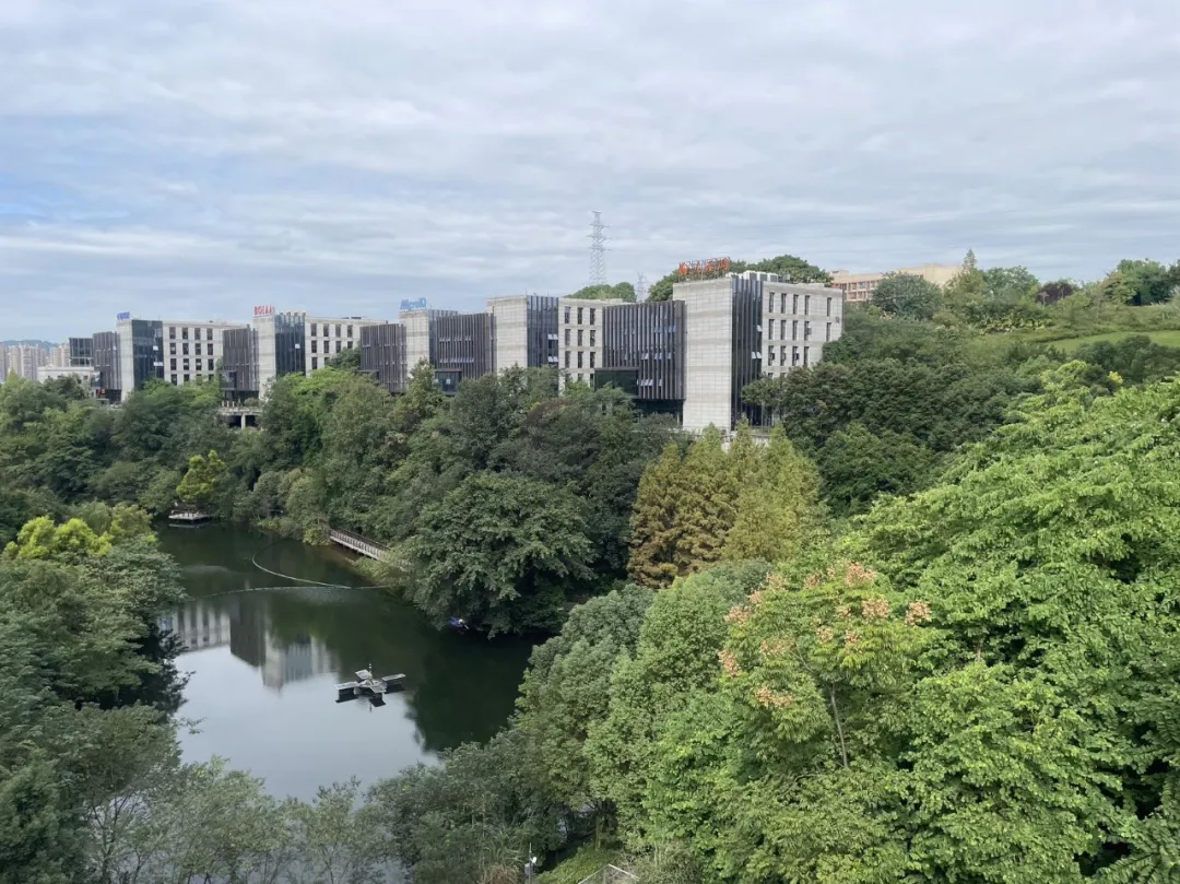 从光电园轻轨站出来,往偏僻的地方走大概两三公里,有个夹角,一栋栋如同五角大楼的建筑,竖立其中,建筑群对外统称:两江数字经济产业园。这里面有许多公司,其中最出名的应该是:猪八戒网。