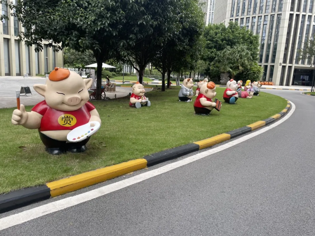 往里走,许多卡通形象站在草丛中。楼的旁边是华龙网,也不知什么时候搬来的。建筑群旁边,有湖,我原本想去走一走,发现楼梯已经封闭,不知为何。