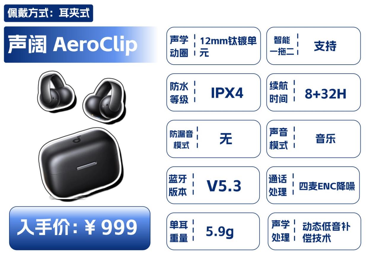 推荐理由:2025年百元档耳夹式耳机里的黑马,实际用起来能跟五百元级别的机型掰掰手腕。