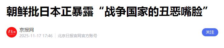 估计日本也没想到,随着高市早苗不当涉台言论的持续发酵,在国际上会引发众怒。不仅中国,现在朝鲜也坐不住了,发文痛批日本暴露“战争国家的丑恶嘴脸”。