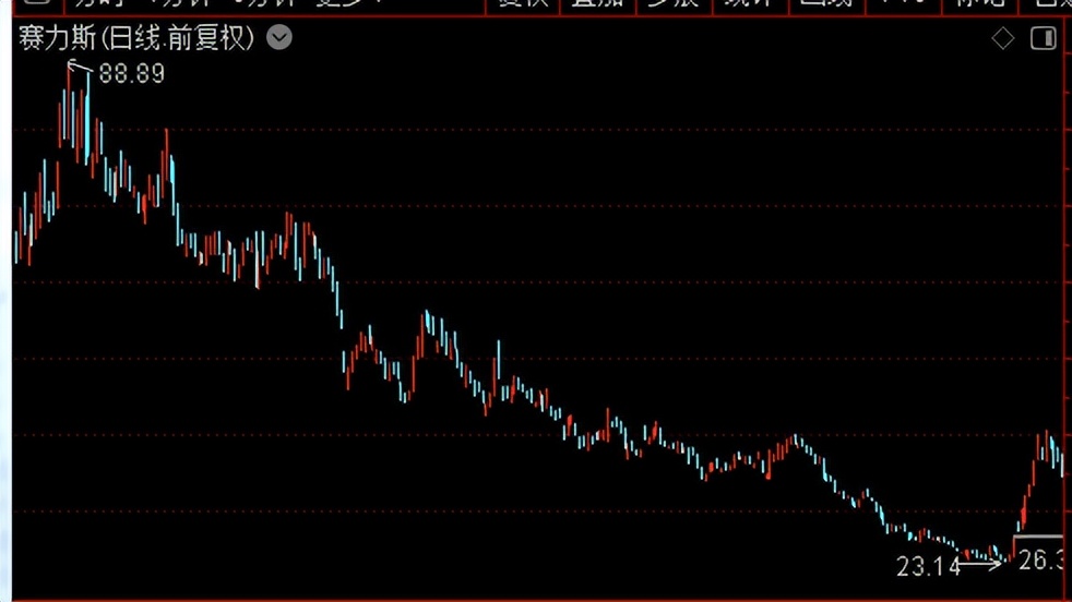 赛力斯22年6月到23年6月,这波杀跌从88.89元杀到23.14元,这种才是“痛不欲生”的杀跌。