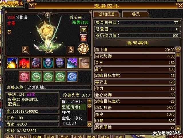 满状态6227忠诚完美高肉墙囚牛,兽灵等级77级,血量24万!我滴天~