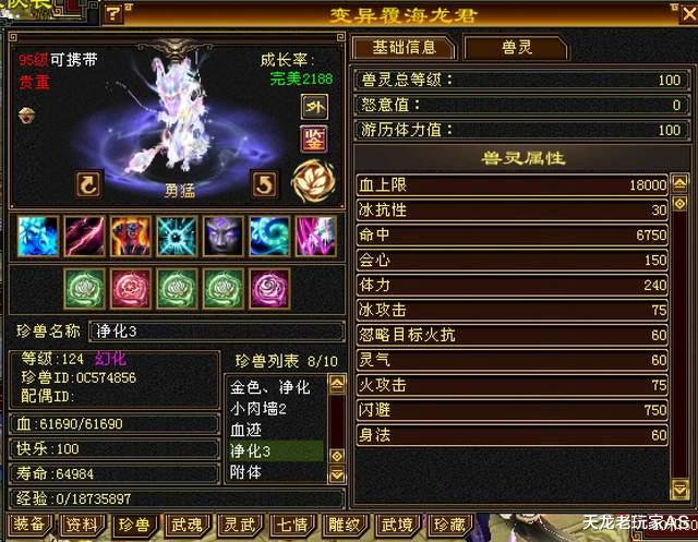 满状态6493勇猛覆海龙君,100级兽灵!