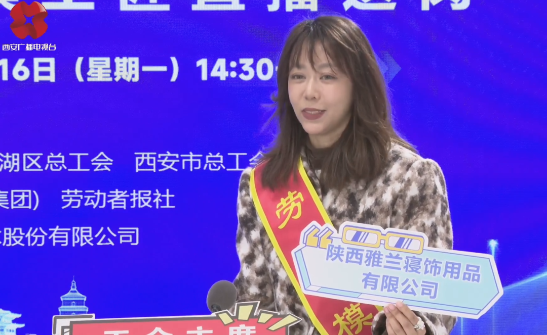 3月16日,由西安市总工会主办的“春风送岗帮就业,助企惠民促发展”春季大型就业招聘活动暨工会主席劳模工匠直播送岗活动顺利举办,陕西雅兰纺织集团副总裁屈娇受邀亮相直播间,全方位展示企业实力、发布优质岗位、传授职场经验,以实际行动助力本地就业服务。