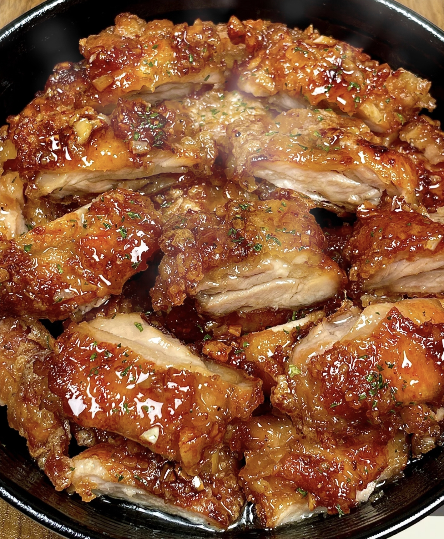 平底锅转小火,放入黄油慢慢融化,蒜末跳进去跳起香辣迪斯科。等蒜香飘出,倒入蜂蜜和生抽搅成浓稠酱汁。重点来了!把炸好的鸡排扔进酱锅,让每寸脆皮都裹满琥珀色外衣,关火前撒把白芝麻,叮~完成!