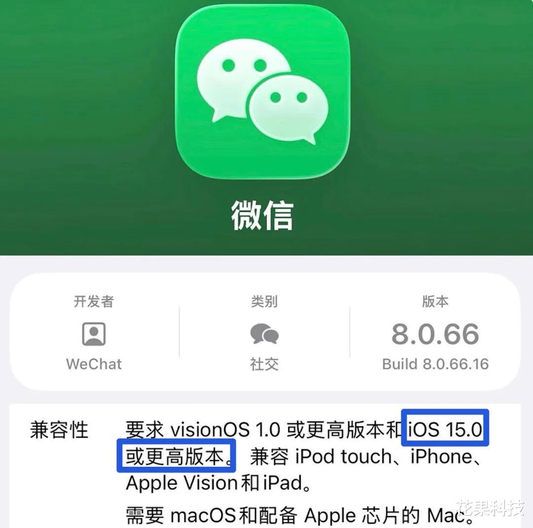 不过在兼容性这一栏可以发现,iOS 微信 8.0.66 版本要求 iOS 15.0 或者更高版本的系统才可以安装。