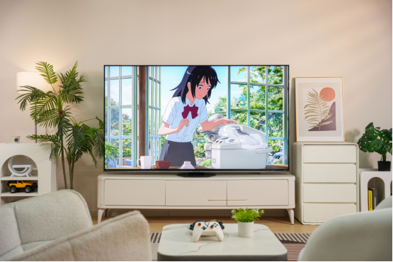第一次装修自己的房子,我从整体风格到装修选材都很上心,铆足了劲想装出理想中的家。硬装和软装都搞定后,选家电就很关键,尤其电视作为客厅C位,如果选不好很毁格调。挑来挑去,我pick了100吋的海信E8S Pro,它的外观和我家现代轻奢风很搭,整机沉稳大气,往墙上一挂,整个家的高端氛围感立刻到位。它也意外成了我家的“社交名片”,朋友来暖房,一进门目光准被它吸引,“这大电视也太帅了吧!”几乎成了所有人的开场白。