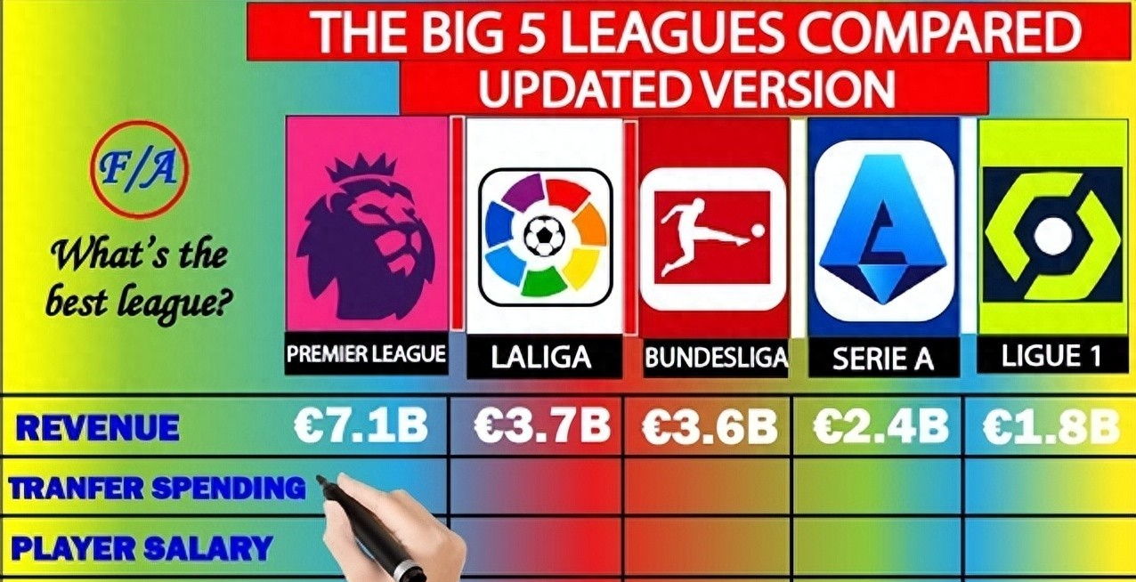 英超联赛,常被称作“欧洲最赚钱的足球机器”。数据显示,2023/24赛季其总收入高达71.4亿欧元,几乎等于西甲(37.2亿)和德甲(36.2亿)之和。到了2025年夏窗,英超俱乐部净投入更是飙升至151.2亿欧元——不仅创下疫后全球足坛的转会支出新高,也把其他联赛远远甩在身后。