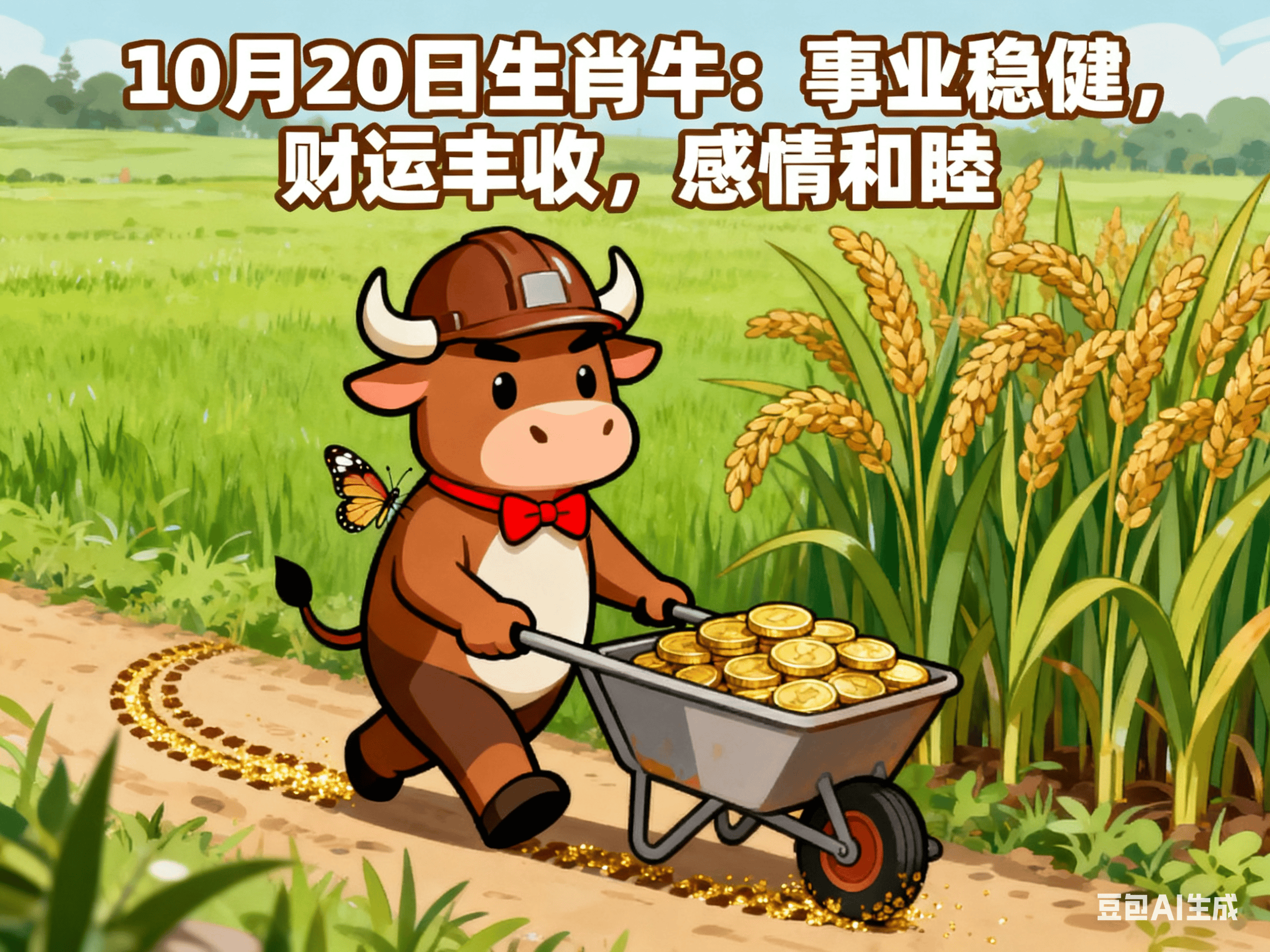 鼠:10月20日,属鼠的朋友运势较为平稳。工作上会有一些小的任务安排,只要按部就班完成,能得到不错的反馈。在人际关系方面,有机会结识新的朋友,拓展自己的社交圈。感情上,单身者可能会有一些邂逅,要留意身边的缘分。