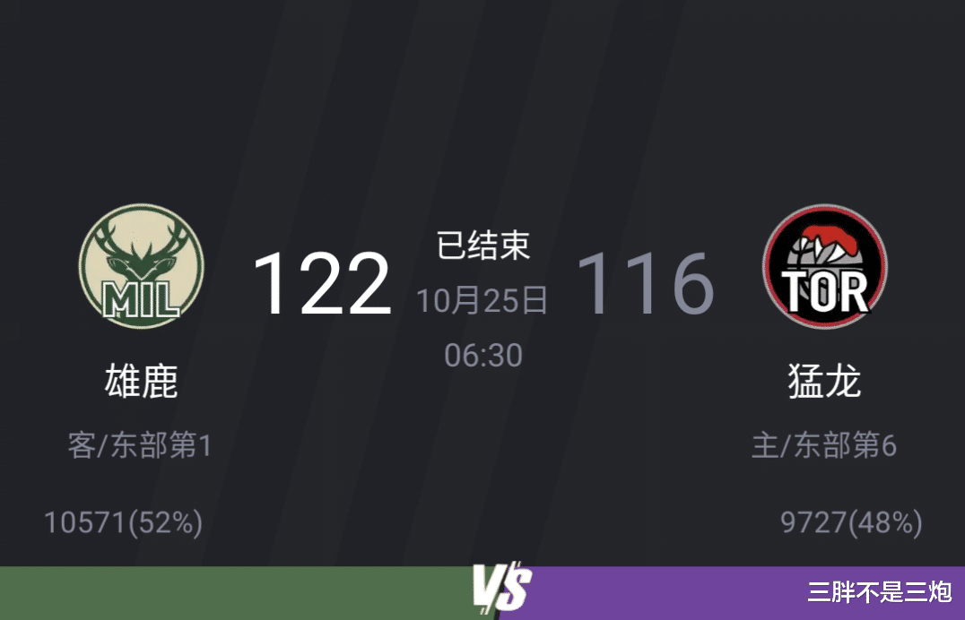 密尔沃基雄鹿 122 :116多伦多猛龙