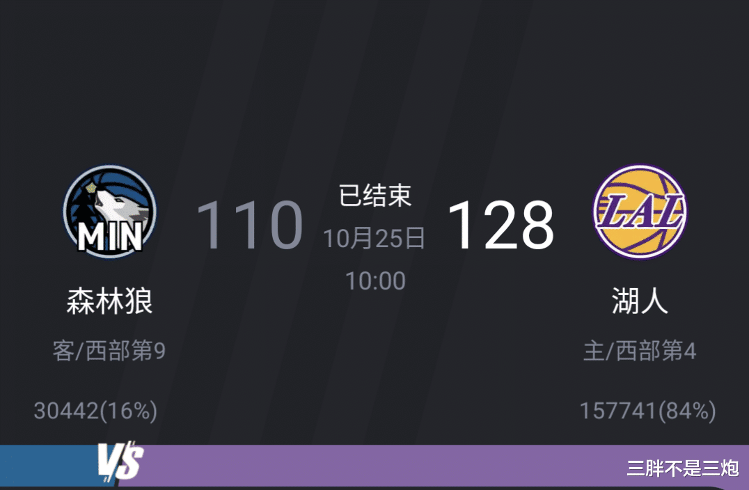 湖人:全队128分、总命中率59.2% 、三分命中率41.4%