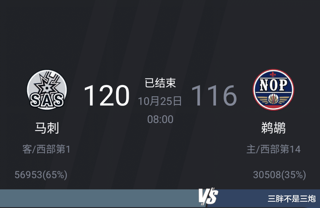 圣安东尼奥马刺 120:116 新奥尔良鹈鹕