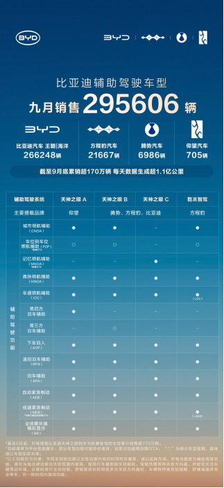 2025年初发布的“天神之眼”辅助驾驶系统,正成为比亚迪加速智能化转型的核心引擎。截至9月,该系统搭载车型累计销量已突破170万辆,其中9月新增29.5万辆,辅助驾驶车型国内销量占比提升至91.3%。