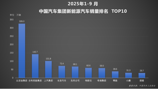 数据显示,比亚迪集团9月销售新能源车39.6万辆,同比增长18.6%;1–9月累计销量达326万辆,完成全年460万辆目标的71%。