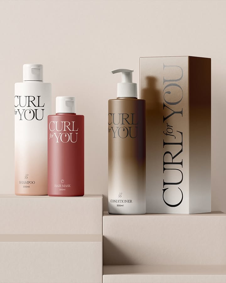 它的包装是莫兰迪渐变 + 极简字体的神仙组合!洗发水的粉白渐变像清晨的柔雾,护发素的棕白渐变似午后的焦糖,就连发膜的酒红瓶身都透着高级感~包装上 “CURL for YOU” 的醒目字体,搭配简约的几何瓶型,往浴室一摆,瞬间让洗头变成时尚大片现场!专为卷发设计的它,连包装都在喊你 “好好宠卷毛”~