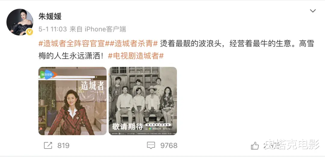 先来说一说朱媛媛的最后一条微博吧,正好停留在半个月前给电视剧《造城者》的宣传时期。