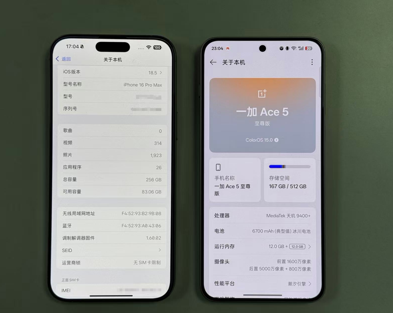 本人非硬核玩家,就是个普通上班族,偶尔熬夜和朋友开黑,换手机就图个流畅和顺手操作,今天特意拿同事的 iPhone16promax 对比了下我的新欢一加 Ace 5 至尊版。
