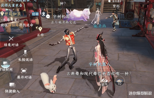 跳完舞之后,这些机器人还不甘寂寞,有的跑到《逆水寒》手游大街上溜达,跟玩家聊天,把古典舞和现代舞都跳了个遍,不愧是机器界的顶级舞者。