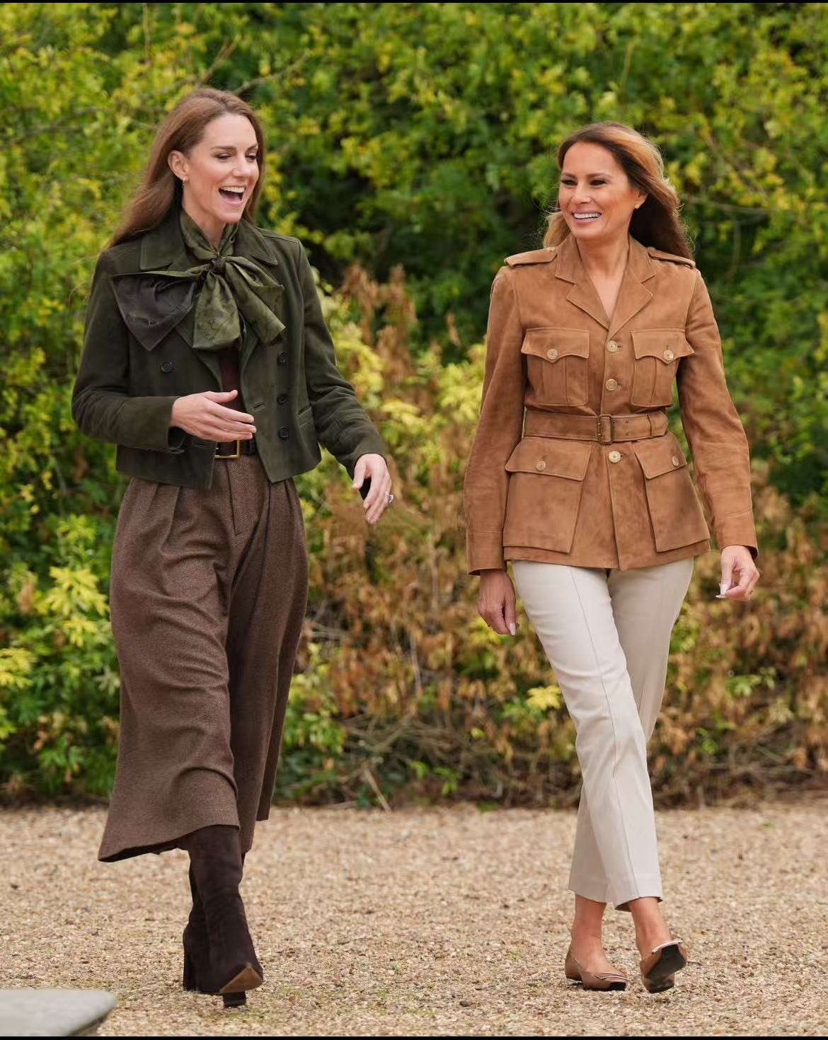 凯特王妃和美国第一夫人梅拉尼娅现身儿童户外活动时,均身穿Ralph Lauren,大地色系的麂皮材质,半裙腰带搭配长靴,传递优雅知性的魅力。
