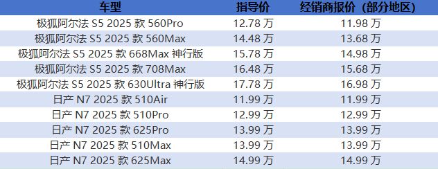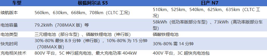 通过以上几个方面的对比可以看出,极狐 阿尔法 S5 在动力、电池品牌、续航以及充电速度等方面具有一定优势;日产 N7 则在价格优惠灵活性(部分地区)和品牌知名度上有一定长处。在这两款车之间做选择时,消费者需要根据自己的实际需求和偏好来决定。如果你更看重车辆的性能、续航以及充电速度等,极狐 阿尔法 S5 可能是更好的选择;如果你只注重品牌知明度,并且对车辆动力等方面没有特别追求,日产 N7 也能满足你的日常使用。