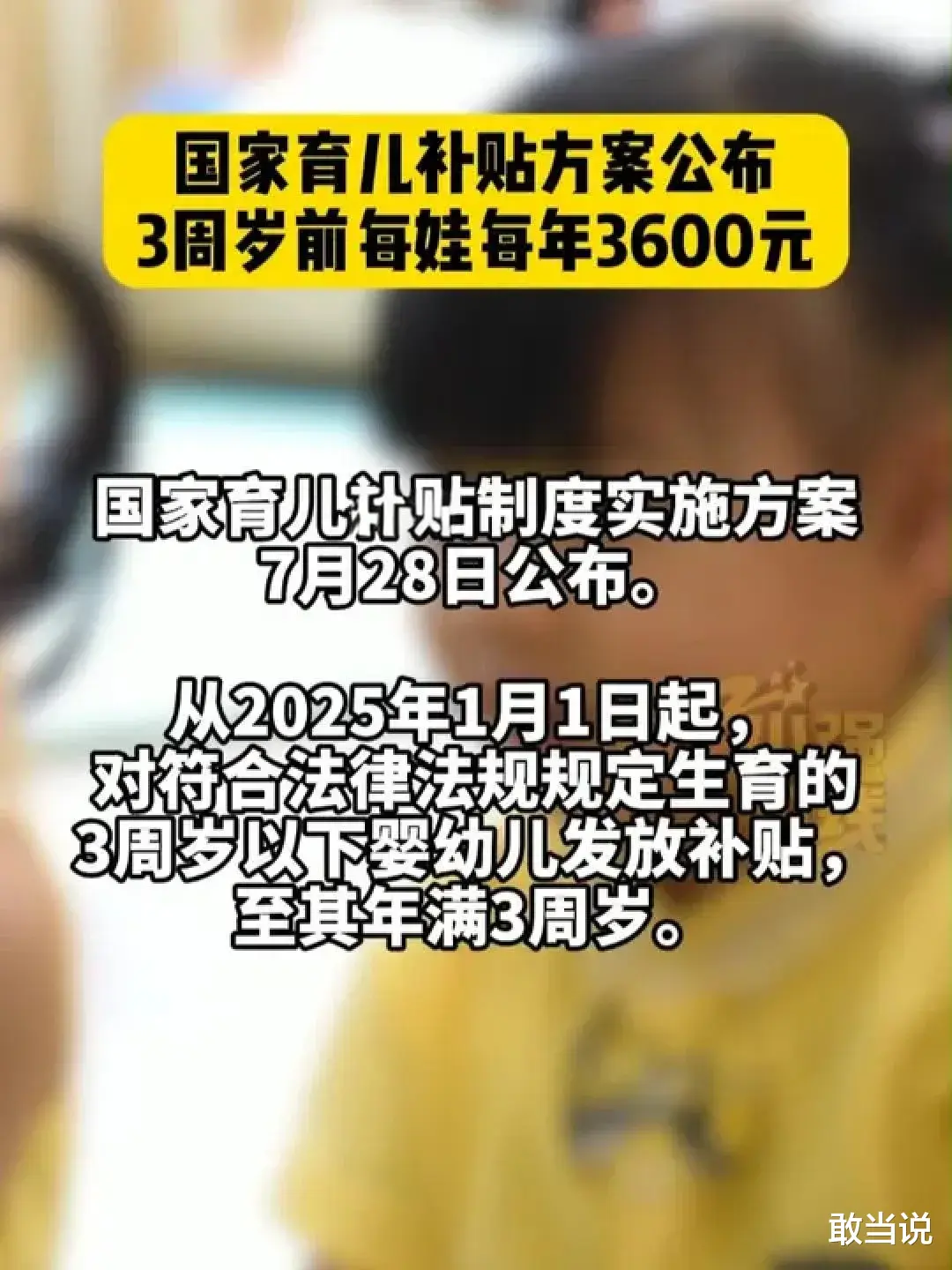 育儿补贴落地,每年均可领取 3600 元补贴,直至年满 3 周岁!生不生?