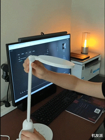 灯臂支持多角度旋转,使用过程中根据需求自由调整方向和角度,让学习和娱乐更加得心应手。阻力效果做得不错,旋转时非常轻松省力,旋转至合适位置后旋转按钮的阻力又恰到好处地固定住灯臂和灯头。
