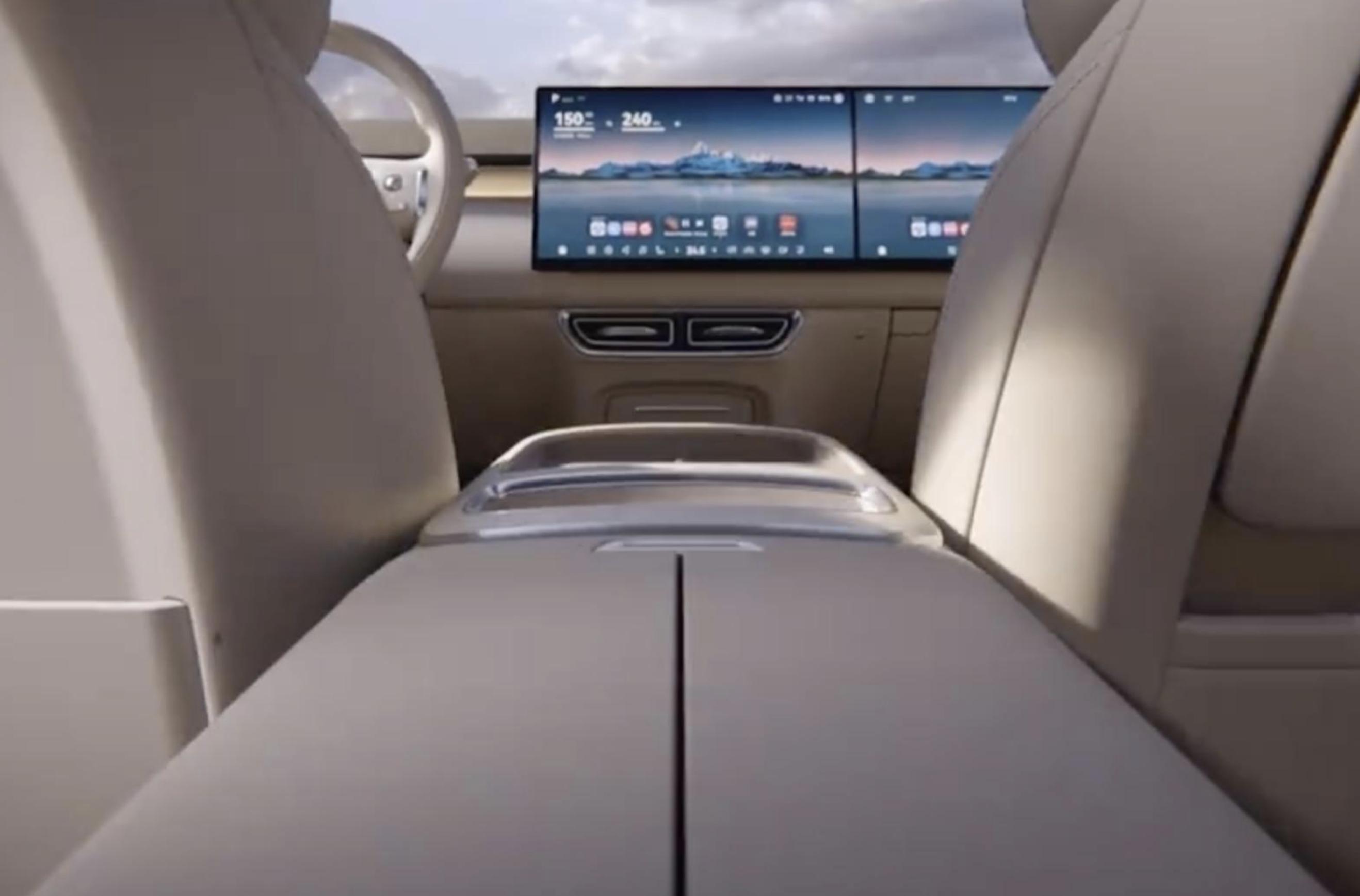 最近,深蓝汽车公布了S09内饰,从官图可以看到深蓝S09前排配有巨大的中控屏,它与副驾驶形成双连屏设计。中央T字区域设计有可前后移动的吧台,可为第三排乘客传递物品,中控台内部设计容量为10L冷暖冰箱,温控范围为-6摄氏度到50摄氏度。