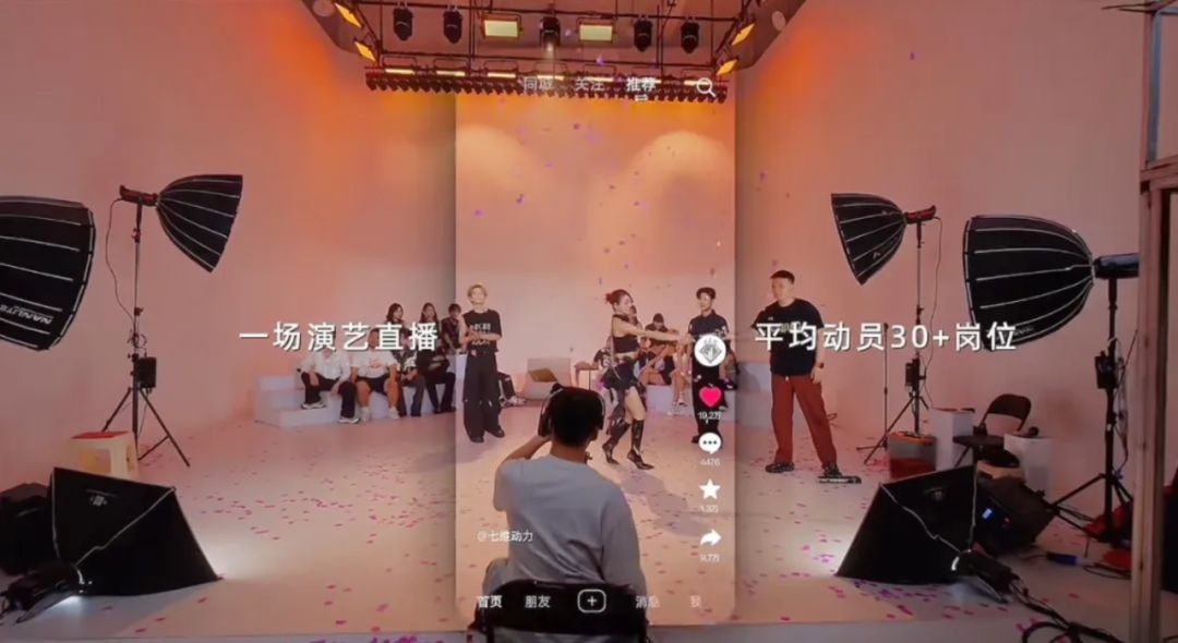 正因团播背后的增长潜力,我们也看到,越来越多的专业团队正在入场。比如,陕西省歌舞剧院在今年6月份成为全国首个尝试团播模式的专业院团,通过将古典舞与武侠元素结合,打造出沉浸式国风舞台剧,后续宁波市演艺集团、吉林省歌舞团、江西省歌舞剧院等专业院团也纷纷跟进。同时,“七维动力”这样的专业综艺制作公司则以卫视级制作水准入局,其20人规模的主播团队配合综艺化互动设计,展现出团播内容的高度专业化和工业化水平。