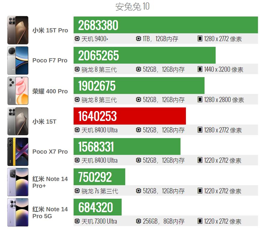 性能小米 15T 系列选择了联发科芯片,Pro 版搭载的是天玑 9400+,标准版则搭载的是天玑 8400 Ultra。天玑 8400 Ultra 虽然算不上顶级芯片,但性能表现依然令人印象深刻。
