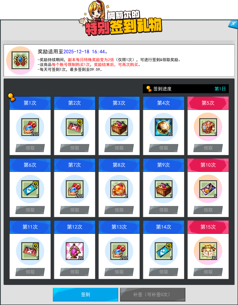 “阿莉尔的特别签到礼物”同步上线,通过该道具可以获得隐藏副本徽记,令副本的通关经验值获得量和超适应力增加,并且可开启签到活动,各种药水、时空卷轴等等多种奖励等你领取,绝对值得拥有哦!