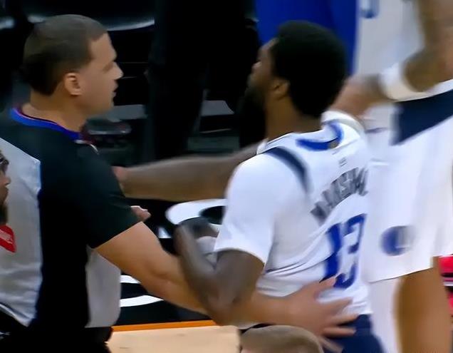 终于,在一次进攻中,努尔基奇进攻犯规,一肘子将加福德直接干翻在地。从动作来看,努尔基奇这一下似乎是发了狠的。被裁判吹罚后,他显然很不爽,起身就走。这一动作点燃了马绍尔的怒火,看到队友被欺负,他隔空冲着努尔基奇大骂起来。